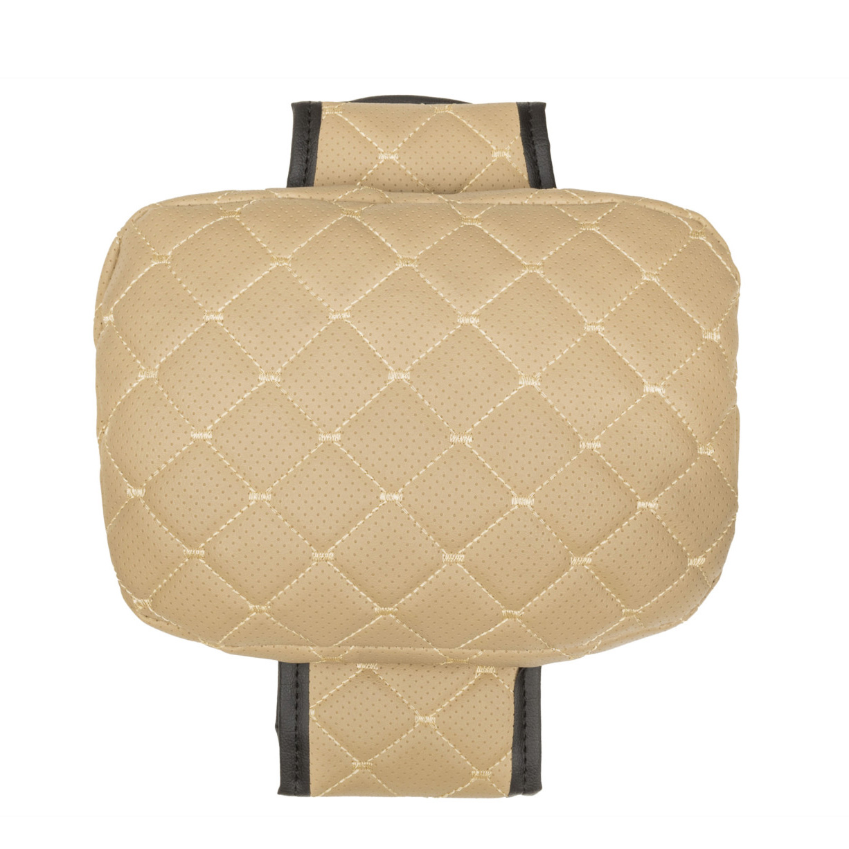 Adjustable car headrest pillow made of eco-leather, beige diamond pattern with beige stitching