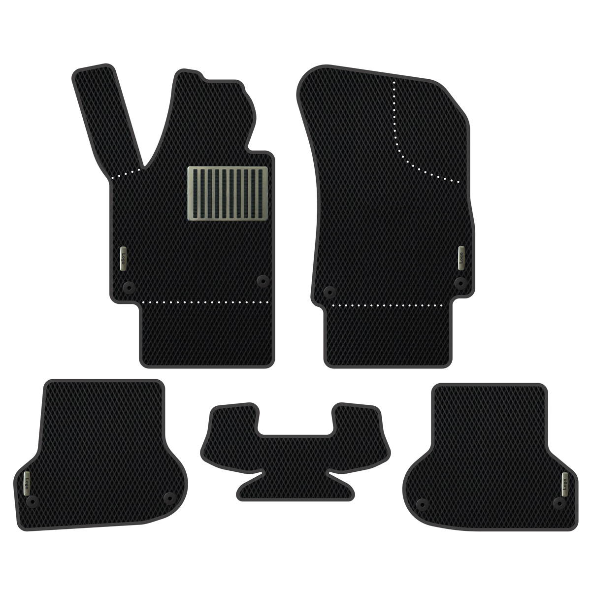 EVA floor mats from us are extremely easy to maintain — simply remove them and shake off any dirt or water. Your shoes, trousers, and car interior will always stay clean! Another benefit of EVA Car Mats Audi A3 8P (2005-2008) is the perfect factory-fit installation — they attach to the original fixing points and are secured with special Velcro to prevent slipping under the pedals while driving.