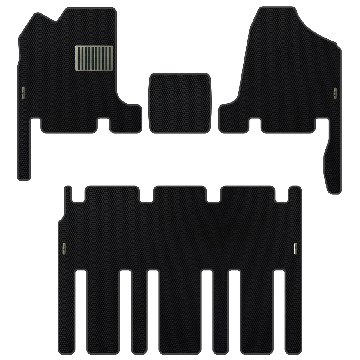EVA floor mats from us are extremely easy to maintain — simply remove them and shake off any dirt or water. Your shoes, trousers, and car interior will always stay clean! Another benefit of EVA Car Mats Kia Carnival (2006-2014) is the perfect factory-fit installation — they attach to the original fixing points and are secured with special Velcro to prevent slipping under the pedals while driving.