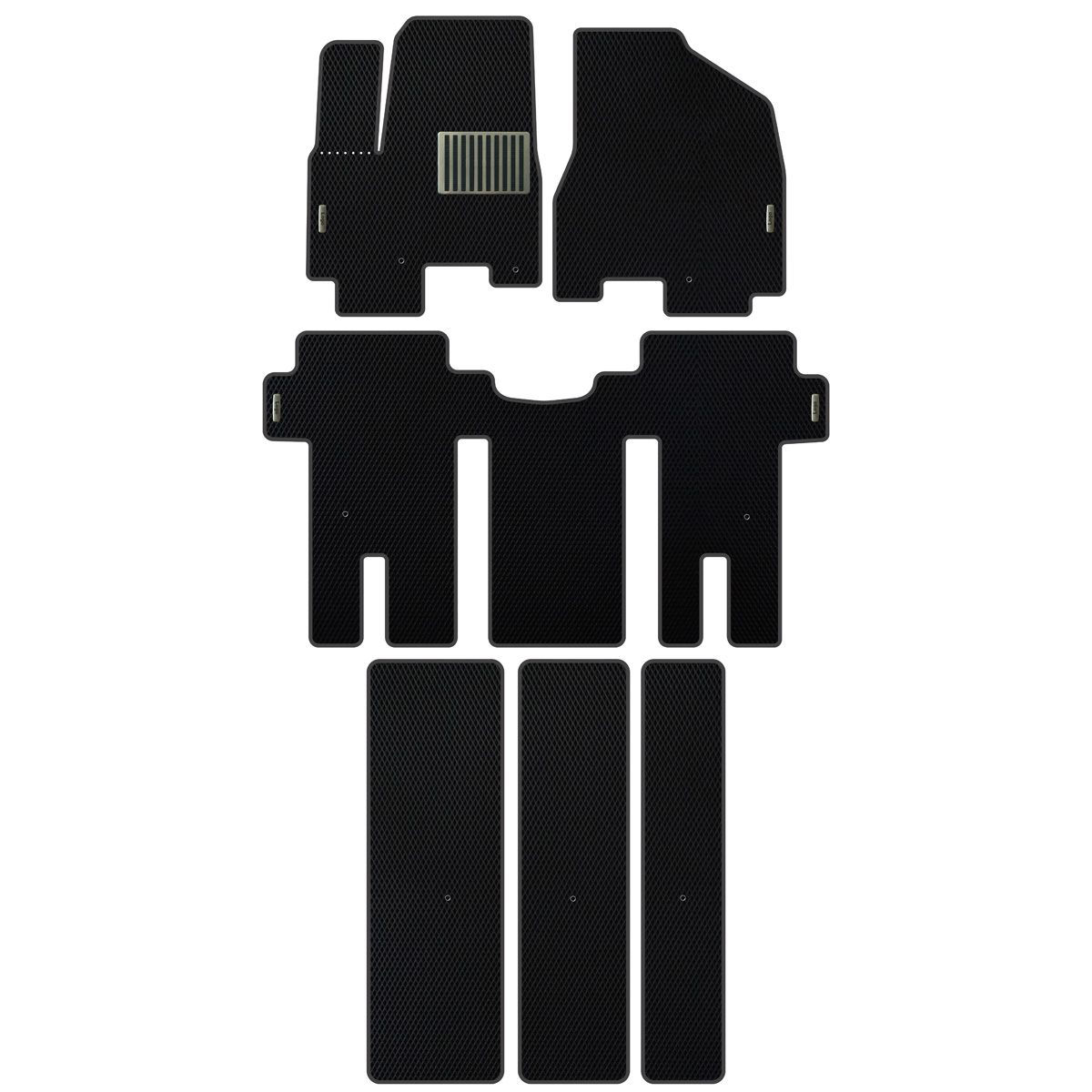EVA floor mats from us are extremely easy to maintain — simply remove them and shake off any dirt or water. Your shoes, trousers, and car interior will always stay clean! Another benefit of EVA Car Mats Kia Carnival (2014-…) is the perfect factory-fit installation — they attach to the original fixing points and are secured with special Velcro to prevent slipping under the pedals while driving.