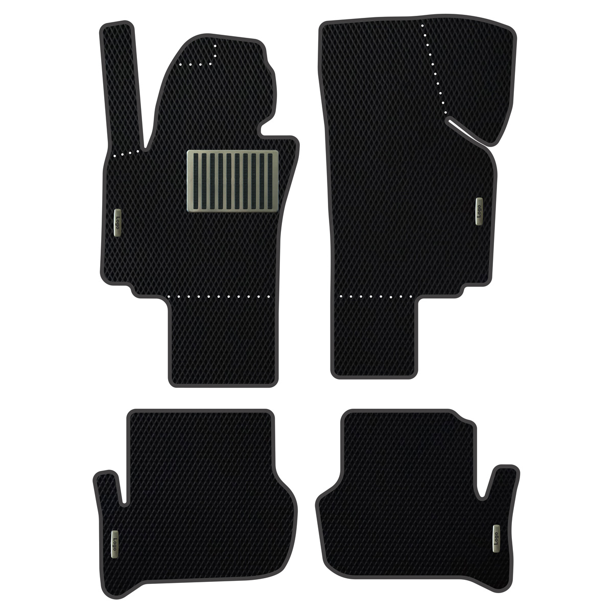We deliver EVA car mats all across Europe — Germany, France, Italy, Spain, Poland, Hungary, Bulgaria, Austria, the Czech Republic, Slovakia, and many other countries. Our online configurator lets you choose the material (diamond or honeycomb pattern), color combinations, reinforced heel pad, and even your car brand logo. A wide range of base and border colors allows you to create a fully personalized EVA floor mat set perfectly matching your vehicle’s interior.